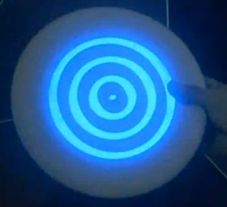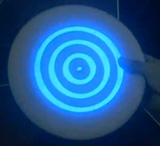 Identity discs issued to Game Grid programs appear as solid discs with several concentric rings on the surface, glowing with their owners' circuitry color. The circuits glow more brightly when the disc is in use, and have been seen to change size or flash on and off when active. In flight, old-system discs appear as uniform circular planes of light in their owners' circuitry color, trailing comet-like tails as they fly towards their targets. Despite this appearance, they are still solid to one another, and ricochet from other discs with an audible clank.