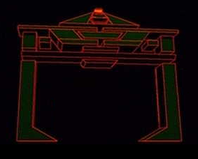 Flynn was able to clumsily pilot the crippled recognizer toward Dumont's I/O Tower. During the journey, Clu's Bit emerged from its hiding place in the cockpit, thinking Flynn was its program. The malfunctioning recognizer repeatedly caromed off cliffs and walls, losing parts all the way, and destroyed a tank when its legs cut a bridge out from under it. Accompanied by the Bit's strident criticism of Flynn's driving, the cockpit module finally crashed without further casualties in the heavily populated area surrounding the I/O Tower. Flynn escaped, but the Bit remained in the cockpit and was trapped there by a forcefield.